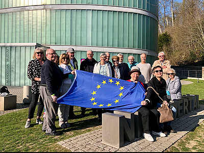 Am 26. März 2022 unternahm die Europa-Union Haan eine spannende Zeitreise durch die Menschheitsentwicklung im Neanderthal Museum. Der Museumsbesuch der Europa-Union Haan entstand aus der Frage heraus: Wie kam der Mensch nach Europa ? Und vor dem Hintergrund einer zunehmenden kreationistischen bzw. fundamental-religiösen Strömung, die die Evolutionslehre in Teilen oder insgesamt ablehnen und sich mit den zentralen Fragen „Woher komme ich?“, „Wer bin ich?“ und „Wohin gehe ich?“ auseinandersetzen. Diese philosophischen Fragen spiegelten sich auch in einem Kunstwerk wider, dass wir in der Führung durch den Kunstweg -MenschenSpuren- begegneten. Die außergewöhnliche Führung durch den Kunstweg und die der vorherigen Ausstellung erlebten wir mit Museumspädagogin Frau Vorderwülbecke-Nieder. Zuvor erfuhren die Teilnehmer durch einen Vortrag von Museumsdirektorin Frau Dr. Auffermann interessante Einsichten in die biologische und kulturelle Entwicklung der Menschheitsentwicklung, welcher uns informativ auf die anschließende Führung durch die zahlreichen Themenfelder der Menschheitsentwicklung im Museum vorbereitete.