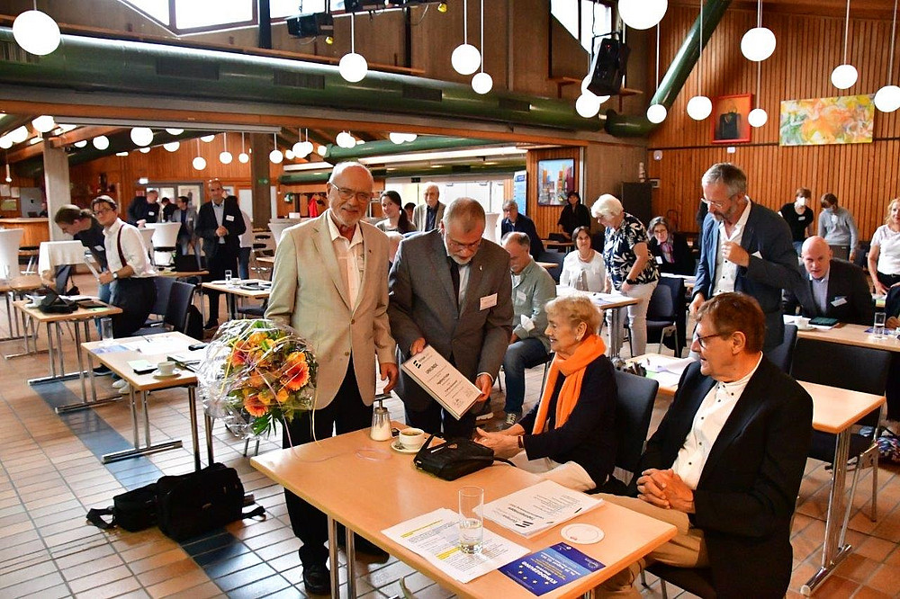 Zuvorderst zu nennen ist die Ehrung von Frau Ingeborg Friebe, welche für ihre 70-jährige Mitgliedschaft in der Europa-Union geehrt wurde. Die Politikerin, welche auch Ehrenbürgermeisterin der Stadt Monheim ist und von 1990 bis 1995 als Präsidentin des Landtages NRW fungierte, erkannte früh den Wert Europas. Die Laudatio hielt Regierungspräsident a.D. Jürgen Büssow.