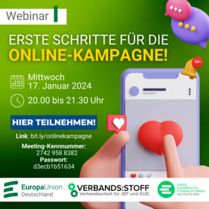 Es wird zudem Informationen über das bislang verfügbare Material für Online-Aktivitäten der Europawahlkampagne geben.