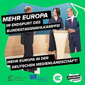 „An die Chefredaktionen der privaten Sendeanstalten ProSieben, Sat.1 und Kabeleins: Nutzen Sie das Triell am 19. September 2021, um Annalena Baerbock, Armin Laschet und Olaf Scholz auf den europapolitischen Zahn zu fühlen!