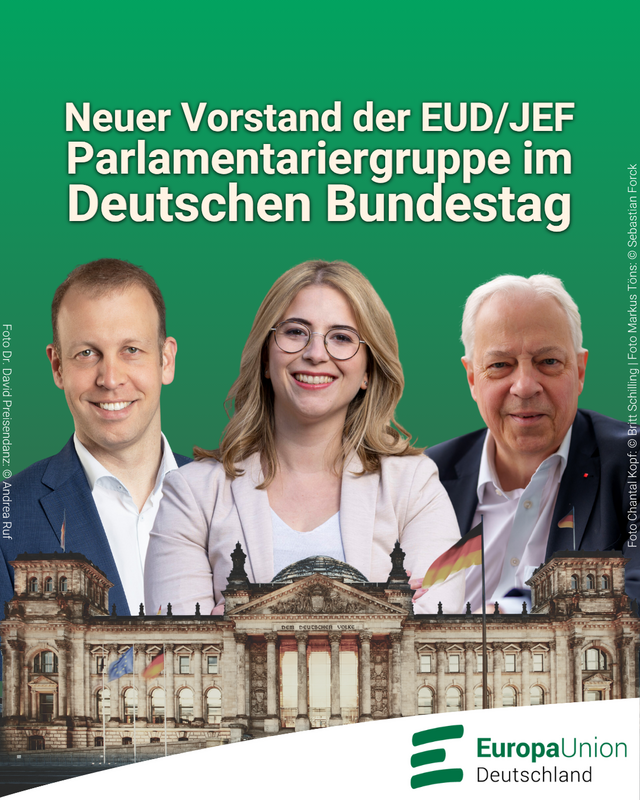Kurzinformation Europa-Union Deutschland e.V.: Die Europa-Union Deutschland ist die größte demokratisch organisierte und lokal verwurzelte Bürgerinitiative für Europa in Deutschland. Mit ihren mehr als 16.000 Mitgliedern und rund 250 Kreis- und Ortsverbänden setzt sie sich seit 1946 für die europäische Einigung ein – unabhängig und überparteilich. Wie auch ihre Jugendorganisation, die Jungen Europäischen Föderalist:innen (JEF), ist die Europa-Union mit ihren Partnerverbänden unter dem Dach der Union Europäischer Föderalisten (UEF) europaweit vernetzt.
