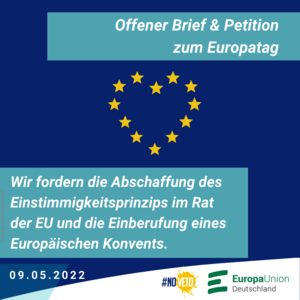 Die Europa-Union ruft ihre Mitglieder und alle Bürgerinnen und Bürger dazu auf, den offenen Brief als Petition mitzuzeichnen.
