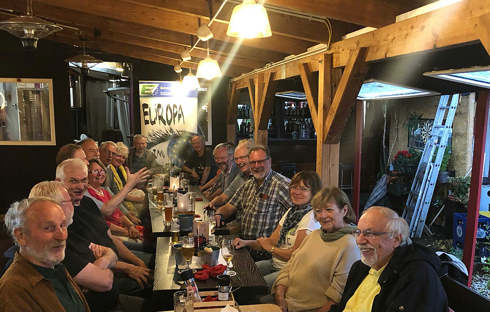 Der 3-stündige, geselliger Abend war geprägt von tischübergreifenden Diskussionen u.a. zur aktuellen Energieversorgung und einem Erfahrungsaustausch zu gelebten technischen Alternativ-Lösungen, wie auch zu weiteren, gemeinsamen Unternehmungen.